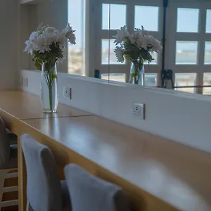 Rooms feature a safe box, a mini-fridge-bar, and a flat-screen TV with satellite channels, and a panoramic view of the sea. They offer queen size beds in the bedrooms.