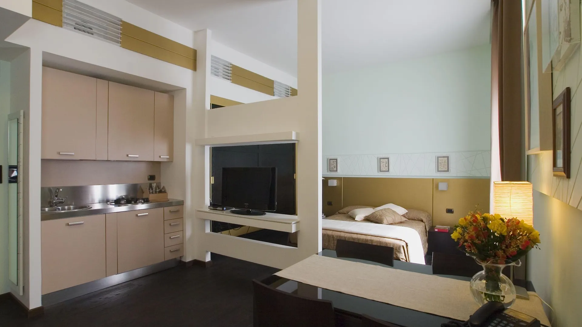 The hotel offers rooms with a kitchenette featuring climate control, along with a flat-screen TV with satellite channels. Bedrooms come with extra long beds. Bathrooms with a bidet, a separate toilet, and a shower, also include hairdryers and bath sheets. Guests can enjoy views of the city from the property.