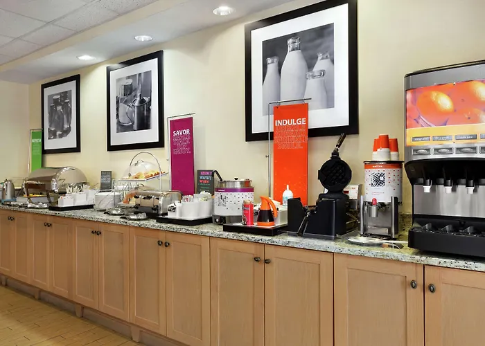 The hotel also includes a fitness room, a fitness centre, a hot tub, and various recreational opportunities. Such spa facilities as a hot tub and an indoor pool are available on site. The family-friendly Hampton Inn offers a 24-hour business centre where guests can use a desk and a xerox.